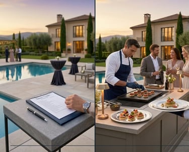 Catering de autor y selección de vinos premium para deleitar a sus invitados con sabor y estilo.